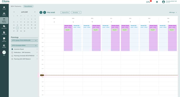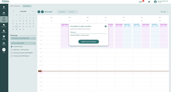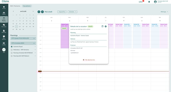 Rendez-vous dans "Agenda / Planning" onglet Vacations