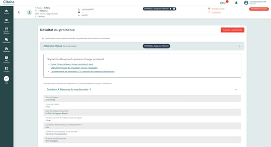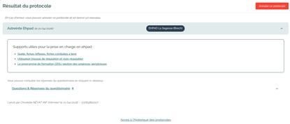 - dans la page de résultats du protocole "Astreinte ehpad"