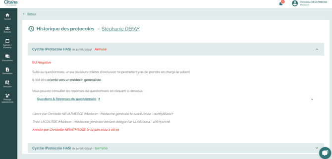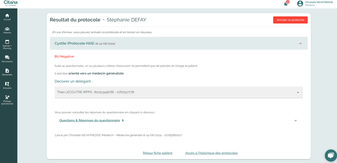 Une fois arrivé sur une page de résultat du protocole (démarche thérapeutique, orientation etc.), vous ne pouvez plus modifier les réponses sélectionnées.