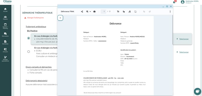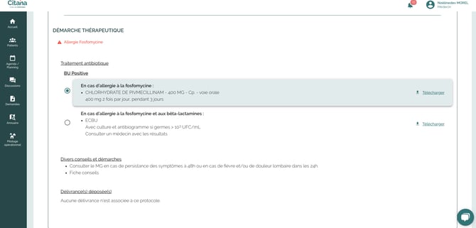 ❶ Lancer et choisir un protocole Ă  partir de la barre d'actions d’une fiche patient