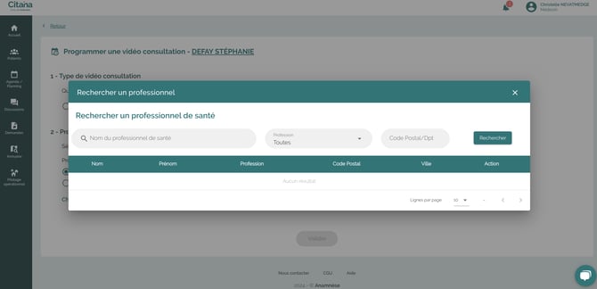 2. Choisissez le ou les professionnels en charge de la vidéo consultation