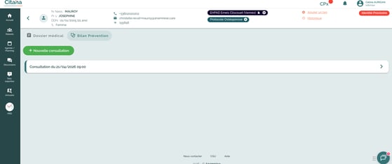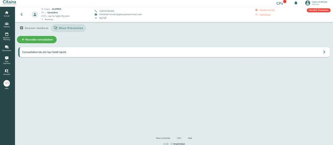 Au niveau de la Fiche Patient, dans l'onglet Dossier Médical/Bilan Prévention, la consultation apparait également